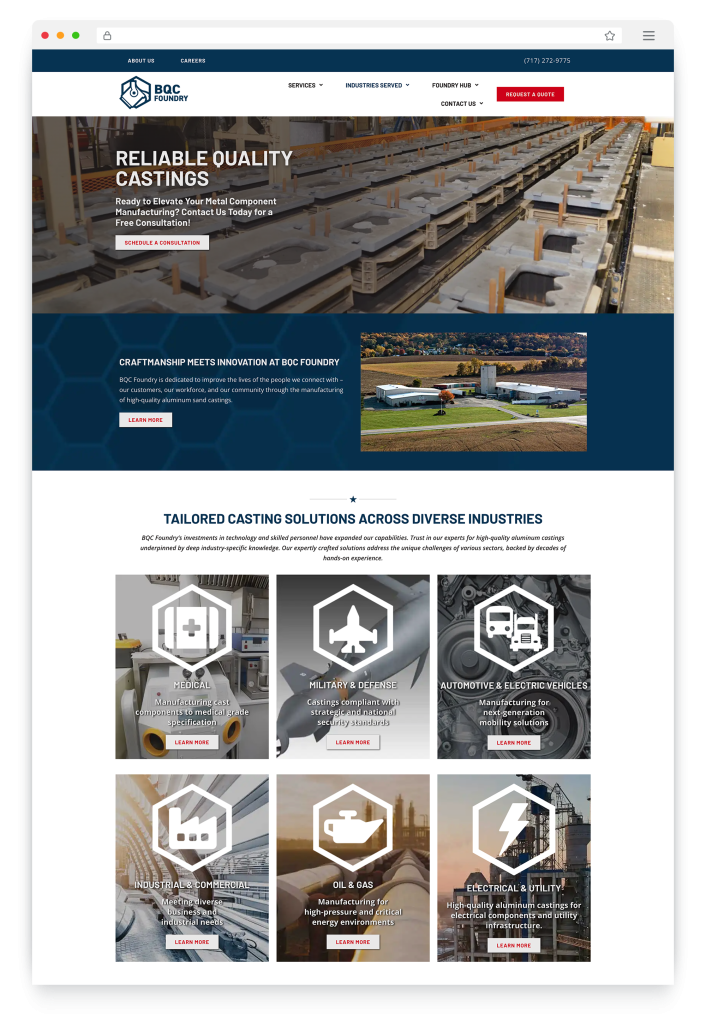 Since launch, BQC Foundry has remained a loyal Marketing Options client for over two years—continuing to build on the strong foundation established through this rebrand and website redesign.